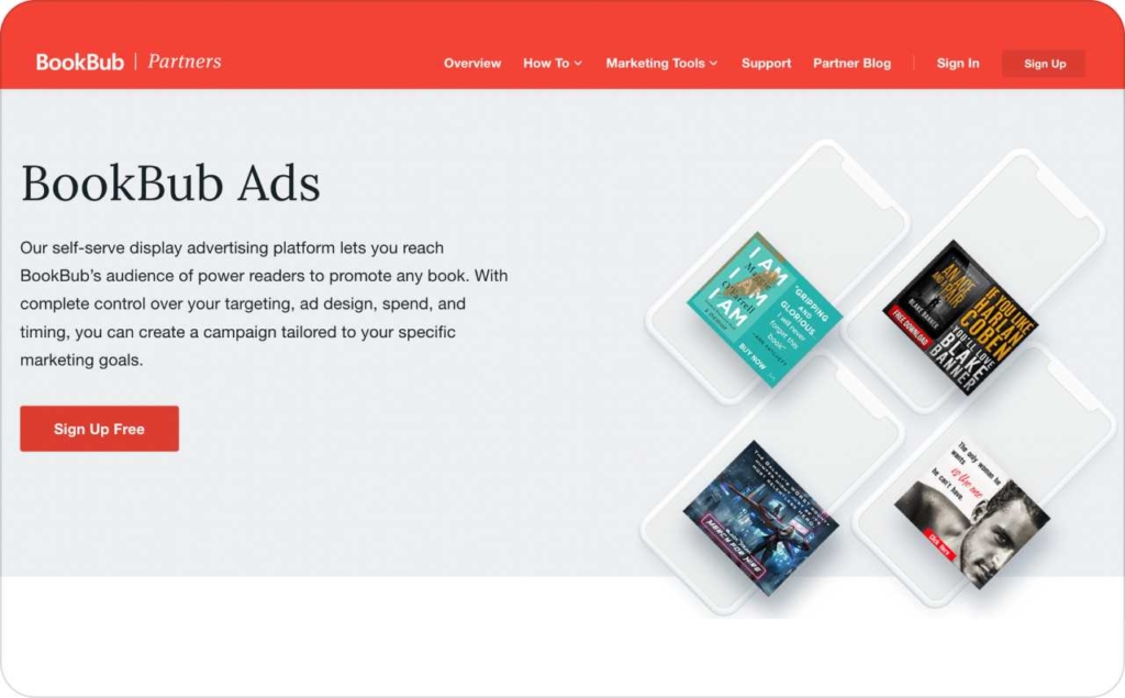 BookBub Ads let you target readers who follow specific authors and genres. Ads appear in the BookBub ecosystem where readers actively shop for deals.