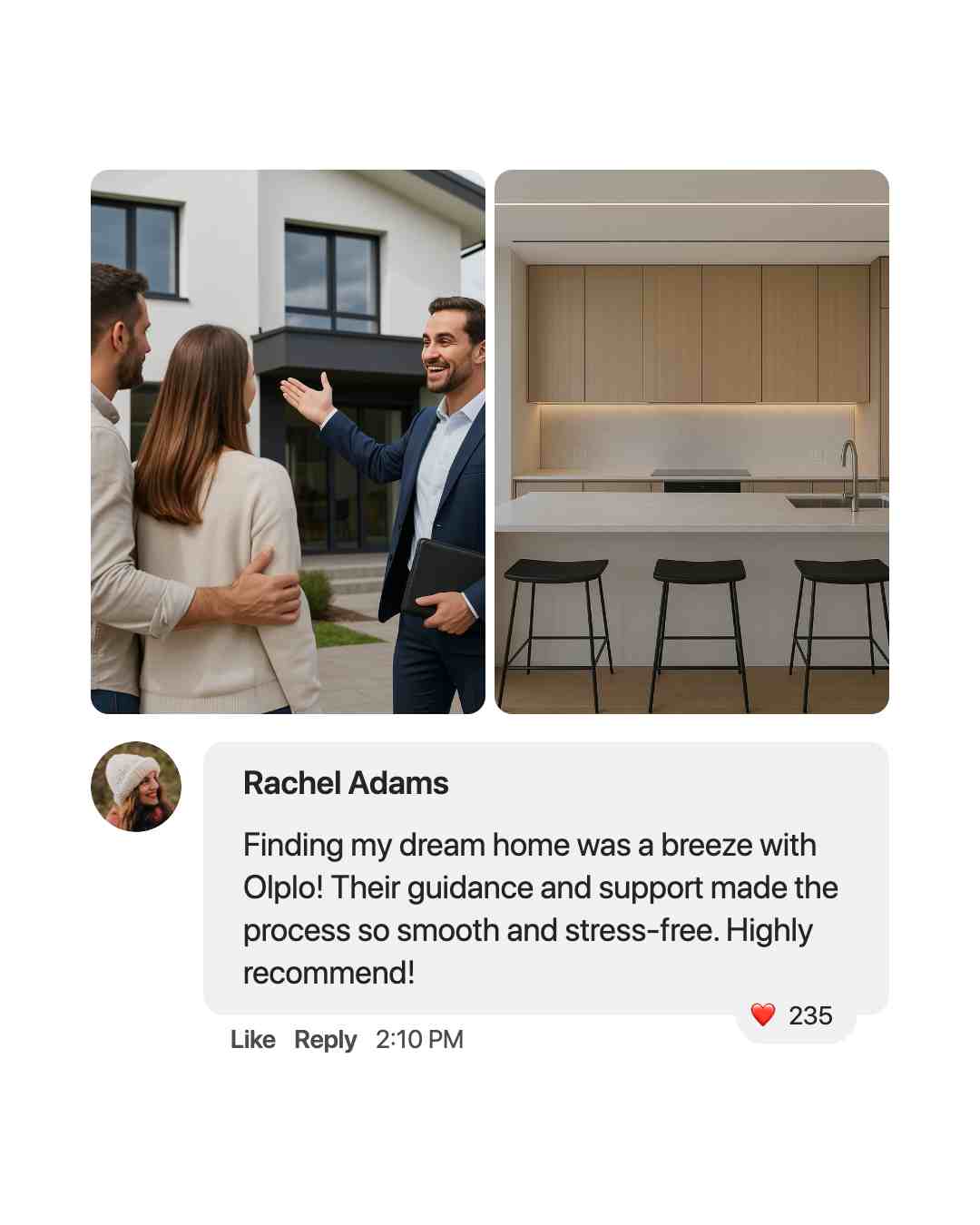A static ad featuring authentic photos of happy buyers with their new homes. The caption shares their story in their own words, which makes it relatable. It’s a simple way to turn satisfied clients into powerful advocates.