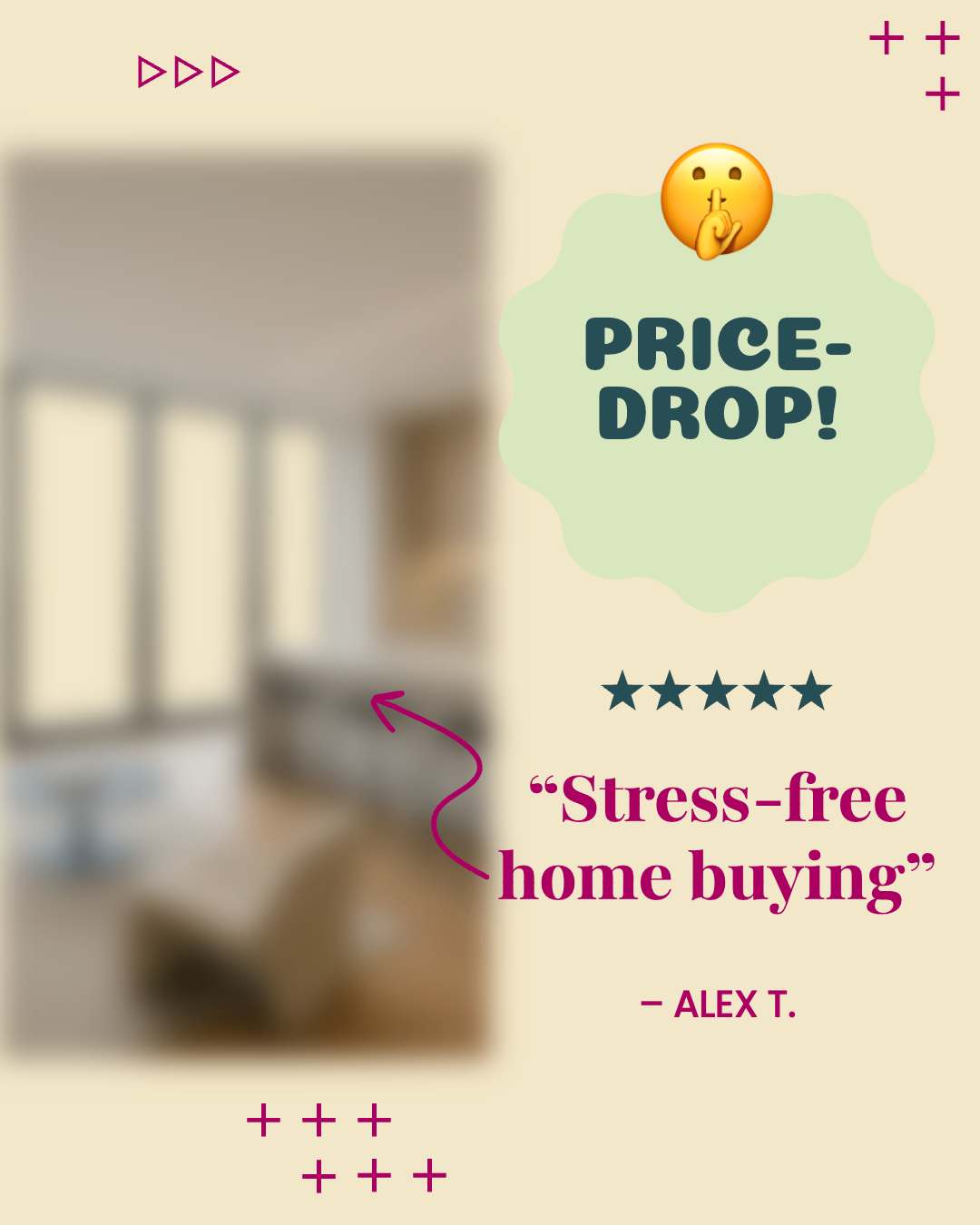 A lead form ad that promotes a recent price reduction. Buyers see savings and are invited to opt in quickly. The sense of urgency makes prospects act before someone else takes the deal.