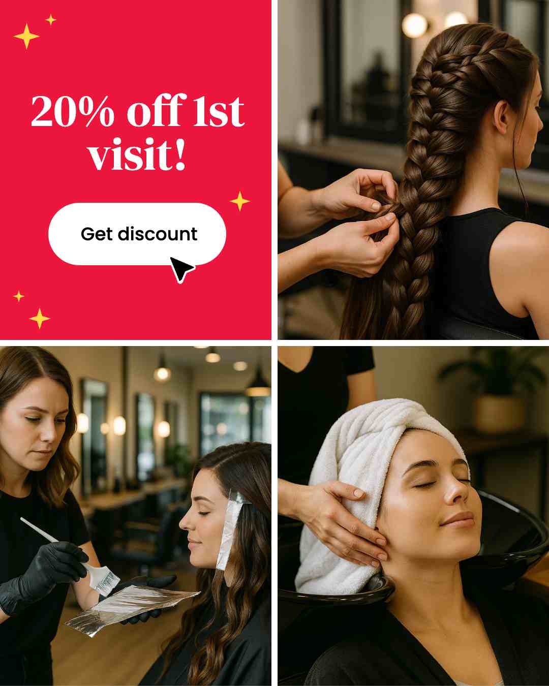 Extensions, keratin treatments, or advanced color correction ads help you reach clients looking for expertise beyond a simple haircut. These premium services boost revenue and client lifetime value.