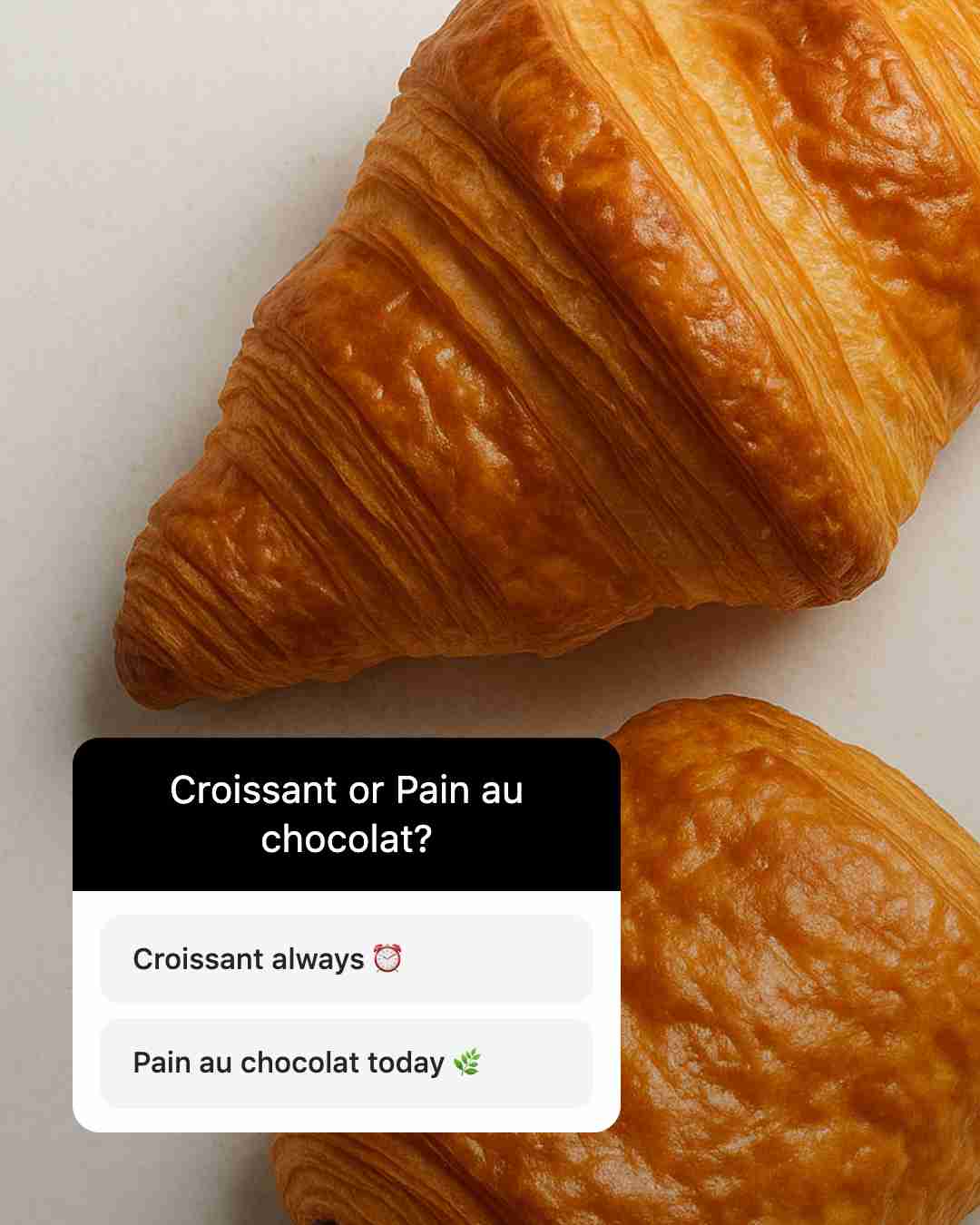 • Run an Instagram Story poll asking, “Pumpkin muffins or classic chocolate croissants — what are you craving?”