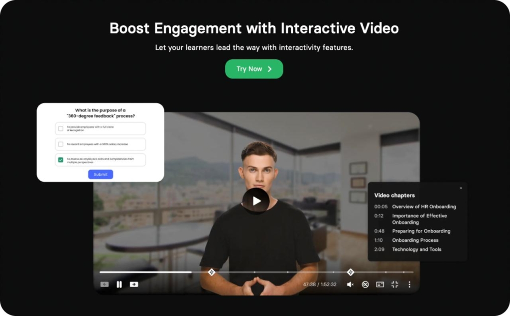 Best for: Internal training, compliance walkthroughs, and multilingual video assets.