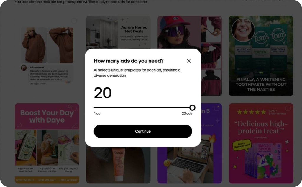 • Optimized templates for Meta, TikTok, Google Ads