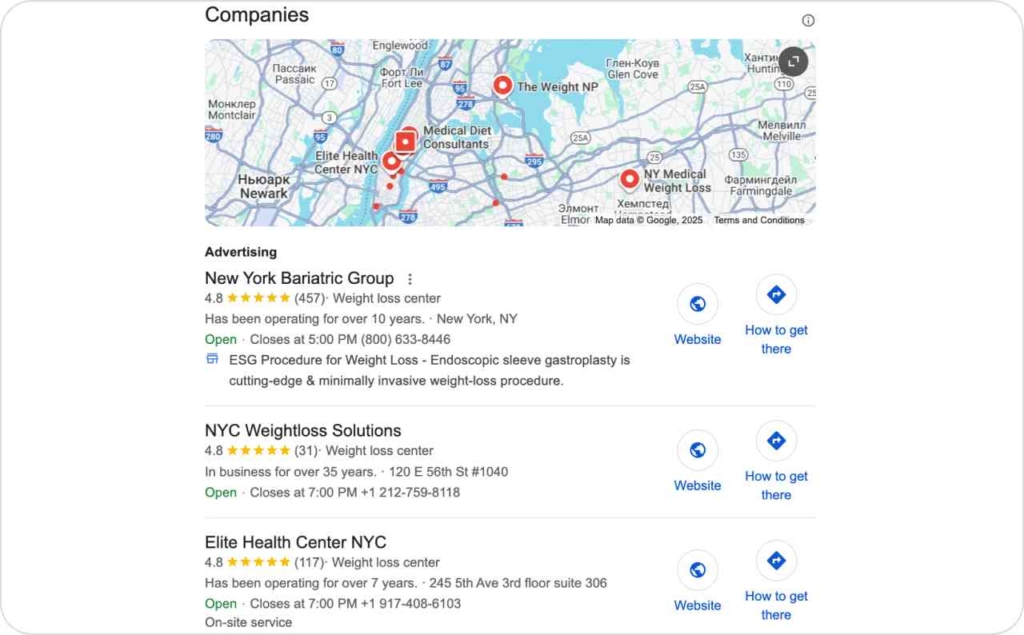 • You capture high-intent “weight loss [city]” searches ready to book now